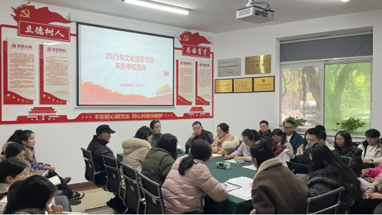 为全面总结年度工作成效,科学谋划下一年度工作重点,12月18日,文化信息学院召开2025年度考核工作会。校党委委员、副院长黄萍出席会议并讲话,学院党总支书记龙飞主持会议。