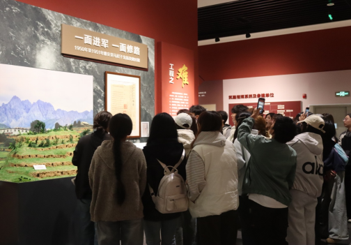 巍巍青山作证,天路蜿蜒如歌。博物馆内,一幅幅珍贵的历史图片、一件件斑驳的筑路工具、一个个还原艰险施工场景的模型,瞬间将同学们带回到70多年前那段波澜壮阔的岁月。藏班学生们认真聆听着讲解员讲述十八军将士和各族民工在极为艰苦的条件下,以“让高山低头、叫河水让路”的英雄气概,克服重重艰难险阻,在“世界屋脊”上开辟川藏公路的感人故事。
